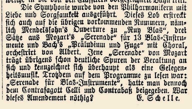 文件记载,勃拉姆斯于12月30日晚离开维也纳,乘夜车前往莱比锡,第二天早上在那里进行了一次管弦乐排练。因此,德沃夏克徒劳的访问最早可能发生在当天晚上。事实上,就在这一天,莫扎特的《大帕蒂塔》被列入了维也纳爱乐乐团中午音乐会的节目单中,这一点在日报和乐团的音乐会档案中都有报道:见此条目。因此,德沃夏克可能事先就听到了这场音乐会。