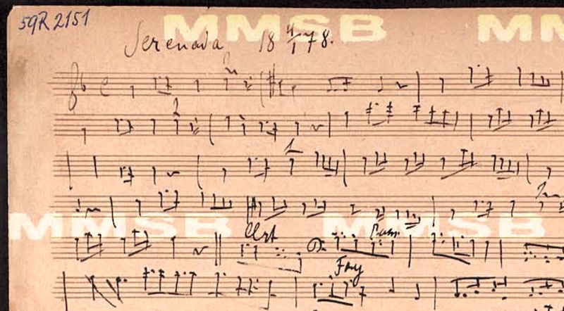 “管乐小夜曲”( op. 44),草稿;作品的开始写作日期是1878年1月4日。