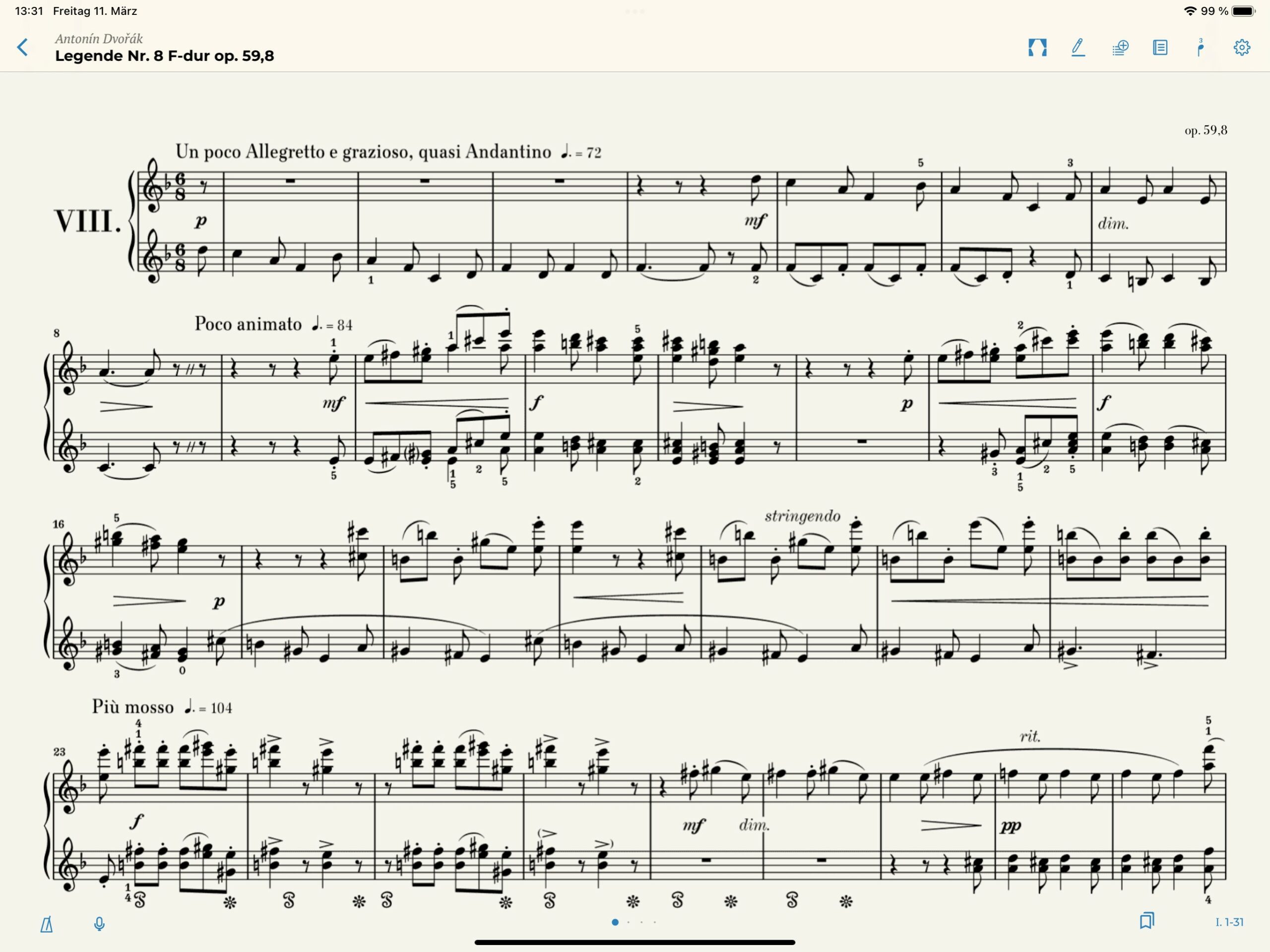 自去年以来,我们在iOS版本的App中引入了一些新功能,我们将在今年的过程中把它们添加到安卓版本中:现在可以为乐谱添加书签,这样你就可以轻松地跳到所需的段落。在注释模式下,你可以向前和向后翻阅。如果你不得不在某个时候重新安装该App,例如,如果你买了一个新的iPad,你可以通过一次点击将整个图书馆加载到你的平板电脑。