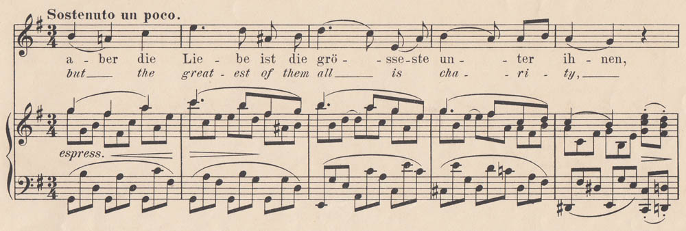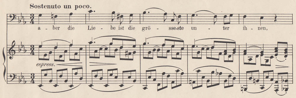 图1:“四首严肃的歌”(op. 121之4),男低音和钢琴的版本,第83-87小节