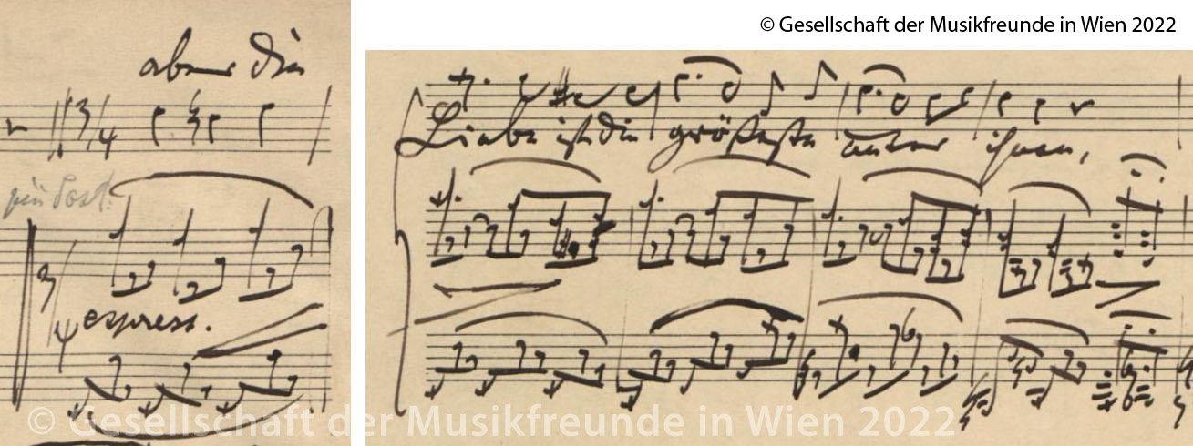 因此,这三个印刷版本显然都是由勃拉姆斯本人完成和校对的,但并没有为作曲家所期望的演奏方式提供一个明确的答案。那么手稿资料是否提供了更清晰的答案?