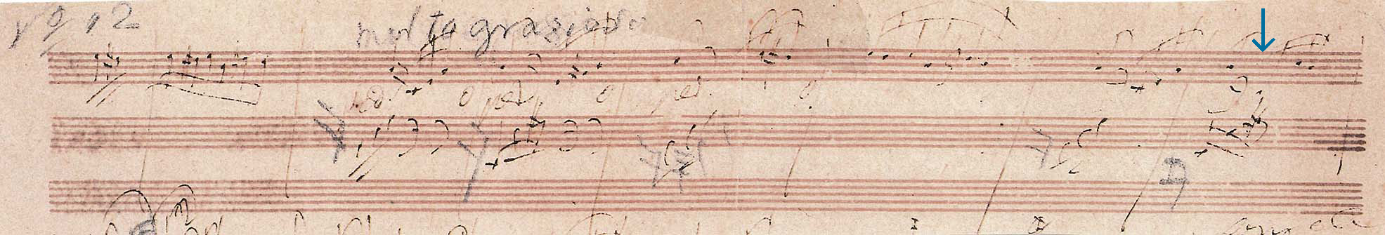 Kurz darauf verschwand Beethovens Handschrift jedoch wieder und ist bis heute verschollen – so dass Nohls Edition der einzige Zeuge dieses Autographs ist. Und wir stehen damit vor der schwierigen Frage: Glauben wir Nohl, dass Beethoven an dieser Stelle in seinem Autograph systematisch die Septe durch den Grundton ersetzt hat? Oder vermuten wir ein Versehen Nohls – und edieren den Text so, wie er in Beethovens Entwurf überliefert ist, also mit d¹? Wir haben uns für letzteres entschieden – und sind weiterhin gespannt, ob das Autograph einmal auftaucht, um uns die entscheidende Antwort zu geben.