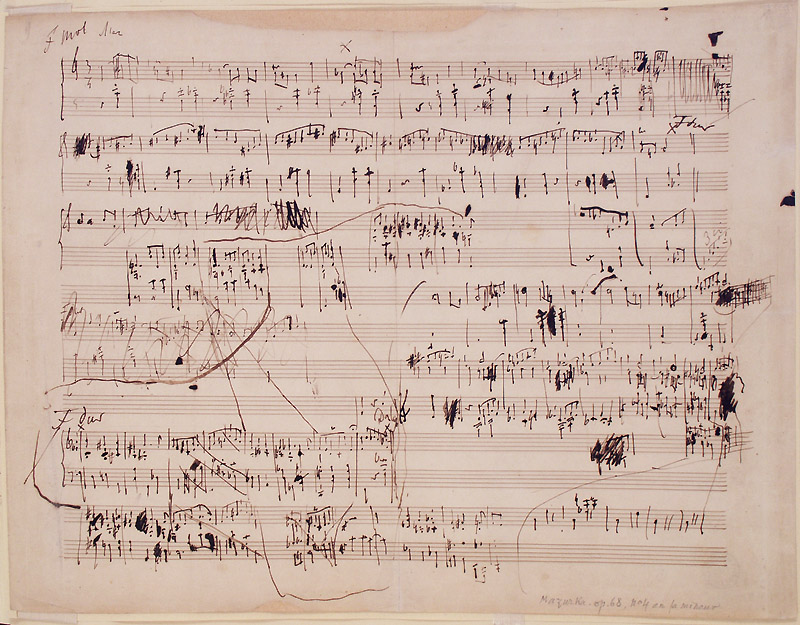 Rätsel ranken sich um Chopins Mazurka f-moll op. post. 68 Nr. 4. Handelt es sich wirklich um die „letzte Inspiration des Meisters“? Wie könnte es anders sein: Nur die Todesnähe des kranken Chopin im Jahr 1849 vermochte, ihn in eine derartig herbe, verzweifelte Musiksprache zu treiben. So dachten jedenfalls viele Chopin-Liebhaber im 19. Jahrhundert. Und trotzdem vermutet der amerikanische Chopin-Experte Jeffrey Kallberg, das Werk stamme eigentlich aus den Jahren 1845/1846 (Vgl. Chopin’s Last Style, in: Chopin at the Boundaries. Sex, History, and Musical Genre, Cambridge/Mass., London 1996).
