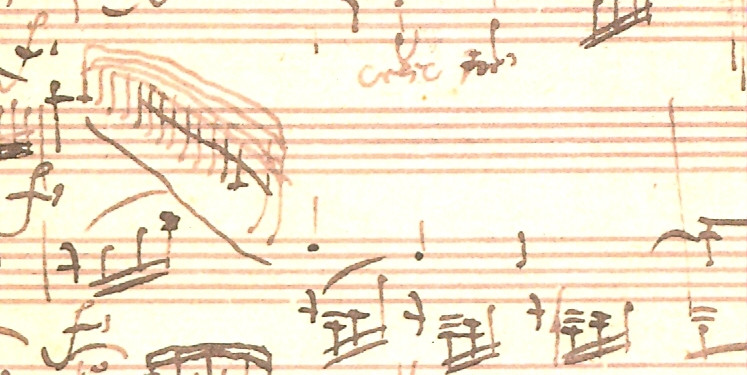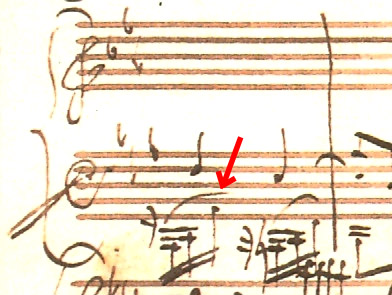 Es handelt sich um jene auffällige Stelle im Schlussteil (Epilog) des langsamen Satzes, wo es nach einer rasch vom Spitzenton b2 herabstürzenden Es-dur-Tonleiter tief, sehr tief hinunter in den Bassbereich geht:
