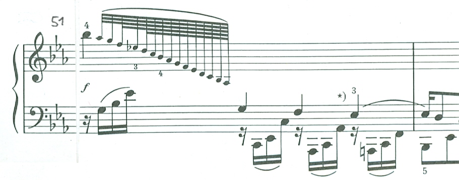 Fassen wir die sich widersprechenden Lesarten von Takt 51, viertletzte Note, linke Hand zusammen: