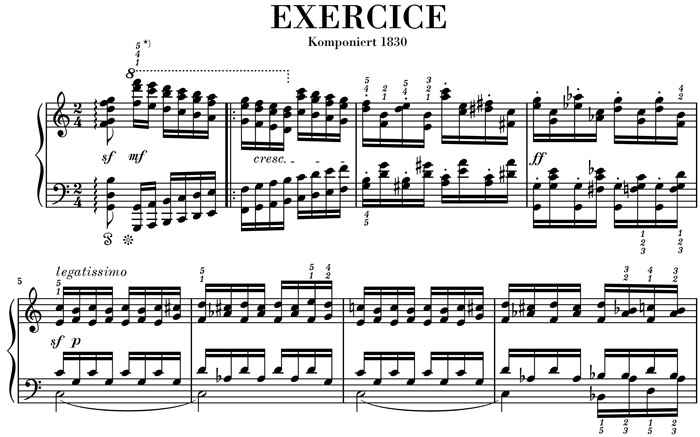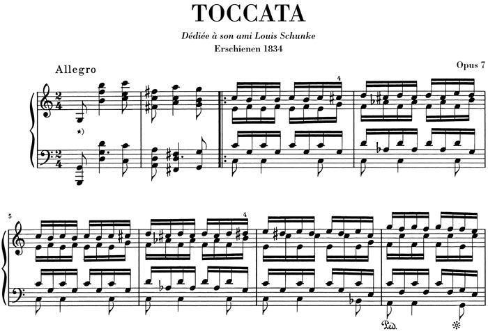 Mitunter braucht es allerdings gar keine neuen Quellen für eine Revision, sondern nur ein neues Bewusstsein – soll heißen, eine neue wissenschaftliche Einschätzung bestimmter Quellen oder Quellengruppen. So bewertete man Schumanns erste Niederschrift seiner Toccata op. 7 von 1830 früher als ein mit Ausarbeitung der endgültigen Fassung für den Druck (1834) überholtes Werkstadium, während die Schumann-Forschung heute solchen zwar nicht veröffentlichten, aber in ihrem Stadium durchaus „abgeschlossenen“ früheren Fassungen einen wesentlich höheren Status beimisst – handelt es sich doch oft genug um ein ganz eigenes Werk. Unser Herausgeber Ernst Herttrich kam beim Vergleich der beiden Versionen zur Toccata zu dem Ergebnis: „Die Übereinstimmungen zwischen den beiden Fassungen sind so gering, dass die Druckversion im Grunde eher eine Neukomposition darstellt“ – weshalb wir uns entschlossen, die Schumannsche Toccata in unserer neuen Ausgabe auch in beiden Versionen wiederzugeben (HN 201). Deren Differenzen zeigen sich übrigens gleich in den ersten Takten – und zwar nicht nur im ganz andern musikalischen Gestus des Anfangs, sondern auch in der dynamischen Bezeichnung, die in der Frühfassung bemerkenswerterweise viel detaillierter niedergelegt ist als in der späteren Druckfassung.
