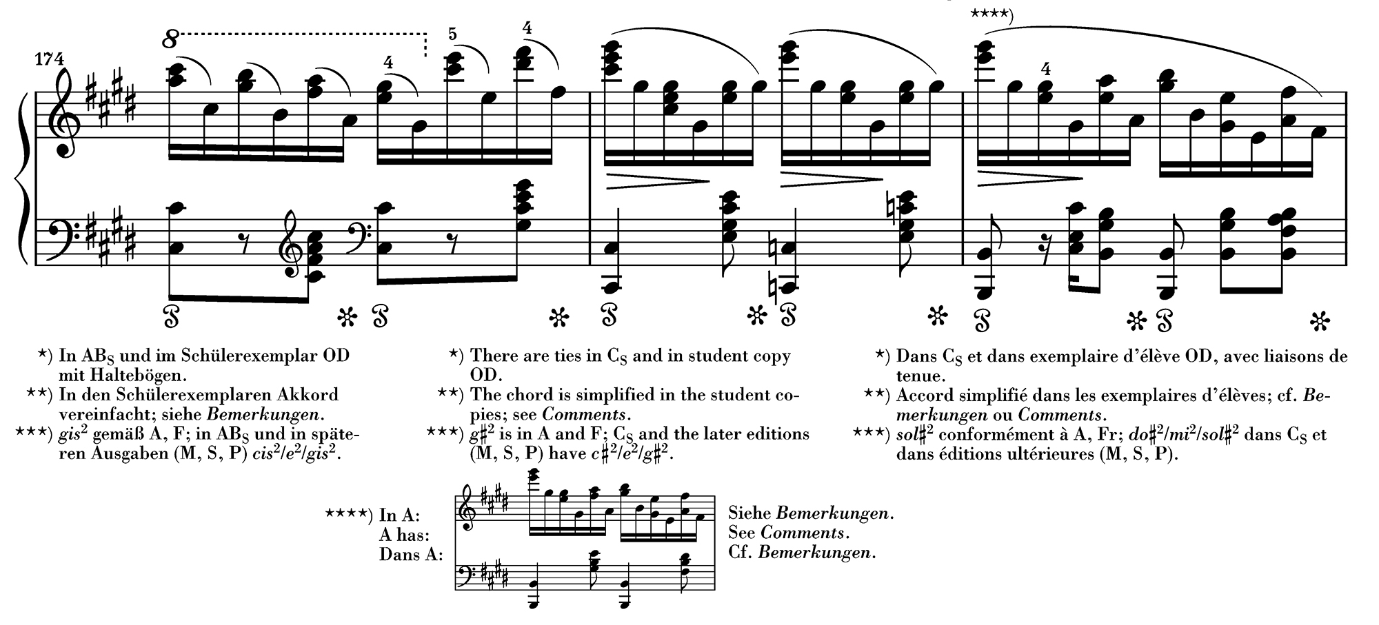 So bietet die revidierte Ausgabe den nach neuestem Forschungsstand als „Fassung letzter Hand“ einzuschätzenden Notentext im Haupttext und zugleich die frühere (dem Musiker möglicherweise aus älteren Aufnahmen oder Ausgaben bekannte) Variante des Autographs in der Fußnote – und nicht nur das: Ganz nebenbei wird in den Fußnoten ein ganzes Spektrum der Chopin-Überlieferung aufgefächert, indem zum einen von Chopin autorisierte Varianten, die in den von seinen Schülern benutzten Exemplaren überliefert sind, dokumentiert, zum anderen durch spätere Ausgaben eingebürgerte Varianten beschrieben werden. So gibt es kein Stutzen („Das kenne ich doch anders?“) mehr ohne die zugehörige Aufklärung – und der Musiker wird in den Stand gesetzt, seine Entscheidungen auf Grundlage dieser Informationen zu treffen (oder bisherige Gewohnheiten zu hinterfragen…). Genau diesem Anspruch wollen wir mit unseren Urtext-Ausgaben gerecht werden – weswegen wir sie immer wieder mal auf den Prüfstand stellen.