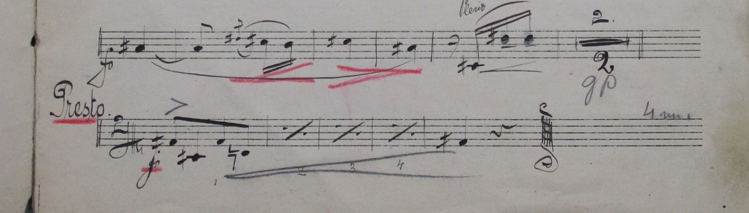 Leoš Janáček - Mládí, Ausschnitt aus der Stichvorlage, 1. Satz, Schluss (Brünn, Mährisches Landesmuseum, Janáček-Archiv)