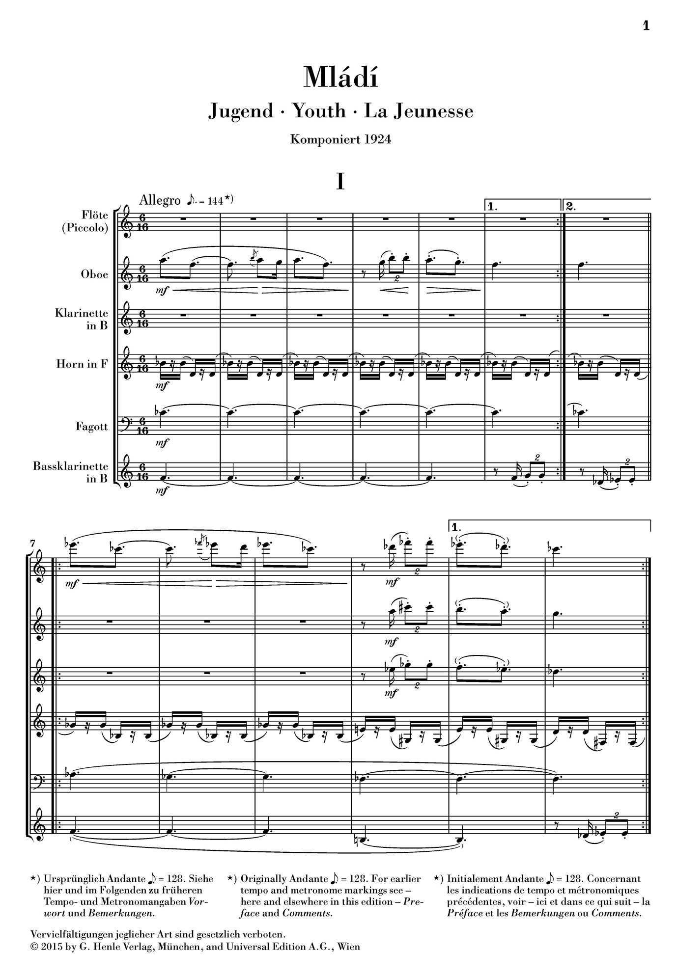 So spielt bei Mládí das (wunderschön notierte!) Autograph eine eher untergeordnete Rolle, während verschiedene (!) abschriftliche Stimmensätze und Partituren für die ersten Aufführungen in Brünn und Prag Zeugen zahlreicher Veränderungen sind, die der Komponist in Zusammenarbeit mit den Interpreten vornahm – aber nicht unbedingt selbst notierte, sondern eben auch von den Musikern oder seinen vertrauten Kopisten eintragen ließ. Und die bereits vor der ersten Aufführung erstellte Stichvorlage der Partitur wurde zwar immer wieder durch Nachträge aktualisiert, aber auch hierin mischen sich so viele Schreibschichten, dass eine Autorisierung jeder einzelnen Eintragung nicht gewährleistet ist.