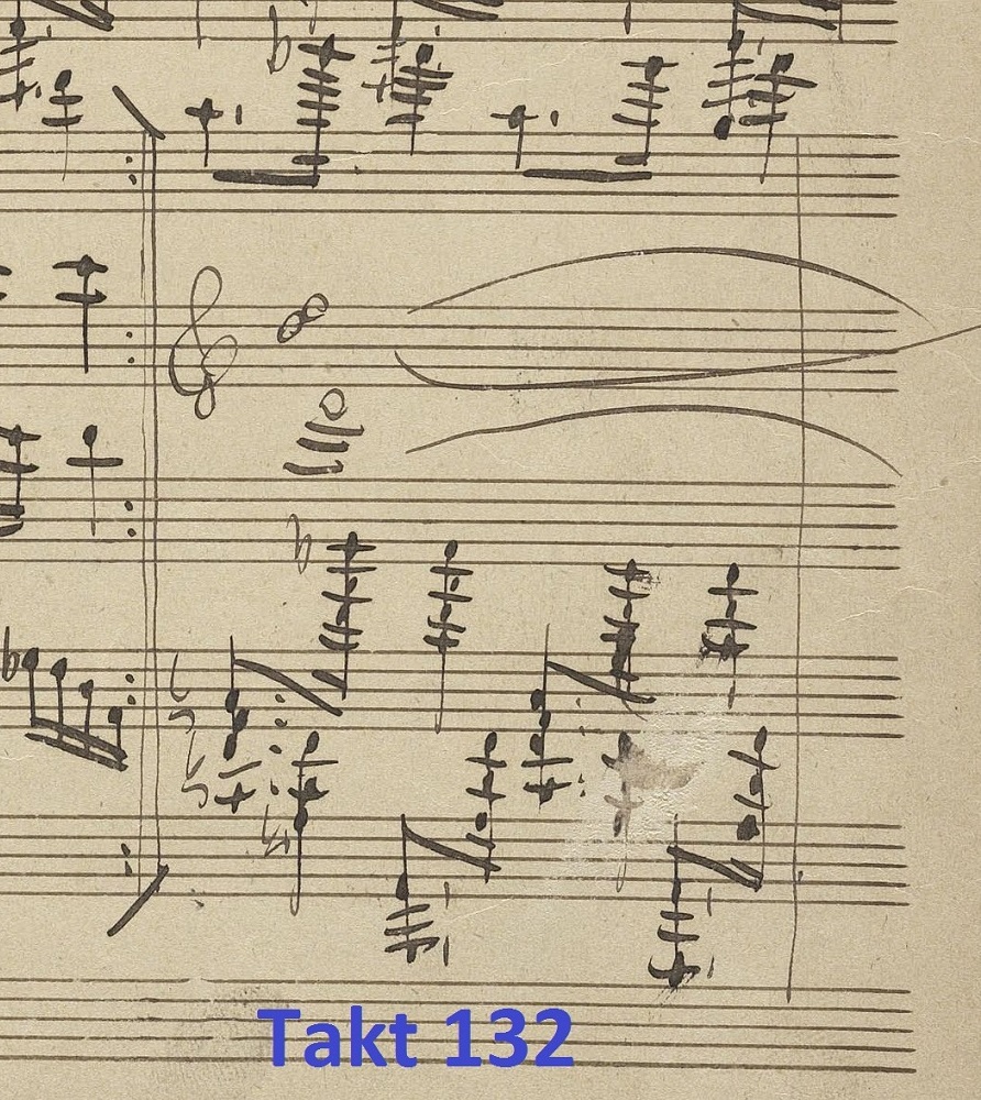 1) In den Takten 132–134 sind die Viertelakkorde von Zählzeit 1 und 3 der linken Hand wie nachschlagende Achtelnoten notiert:
