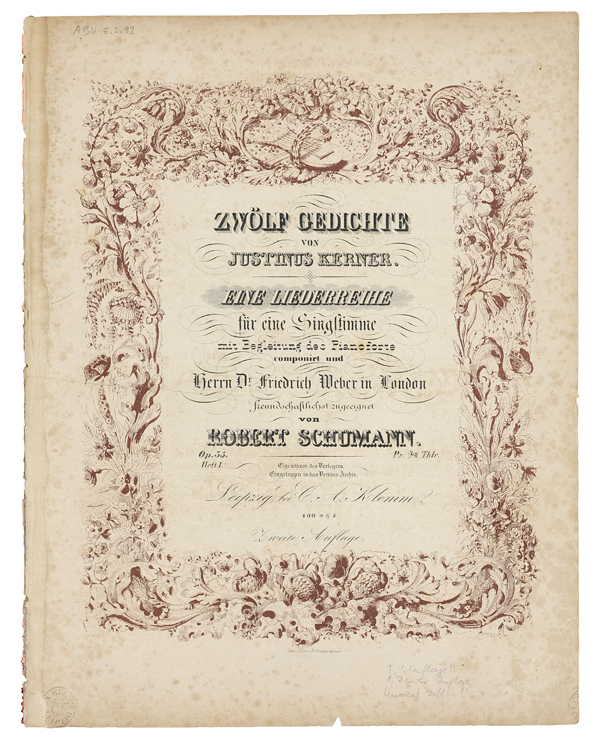 Ein anderes Beispiel sind unsere Lied-Ausgaben Robert Schumanns, bei denen wir die Lieder in den von Schumann zusammengestellten Opera und originalen Tonarten veröffentlichen. Sie meinen, das ist doch logisch? Das mag vielleicht für die „großen“ Zyklen wie die Dichterliebe op. 48 oder den Eichendorff-Liederkreis op. 39 gelten, aber suchen Sie mal eine aktuelle Ausgabe der Zwölf Gedichte von Justinus Kerner op. 35! Diese sind nämlich im Laufe der letzten einhundert Jahre versprengt worden in die verschiedenen Bände großer Sammlungen, die Schumanns Lieder (ebenso wie die von Franz Schubert oder Hugo Wolf) für den praktischen Gebrauch zusammengestellt anbieten und dabei nicht nur Transpositionen vornehmen, sondern mitunter auch originäre Werkzusammenhänge zerstören.