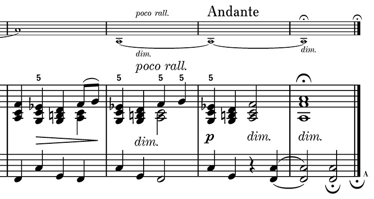 Eine ähnliche Bedeutung der Angabe dim. scheint Carl Nielsen im Sinn gehabt zu haben, als er die Schlusstakte seines Canto serioso für Horn und Klavier notierte: