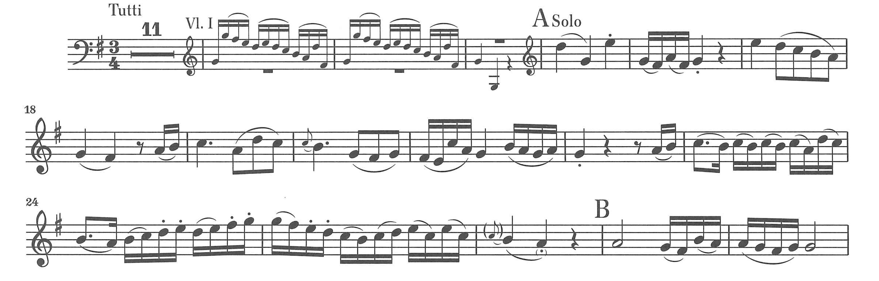 Bei der Ergänzung von Fingersatz und Strichangaben für die bezeichnete Stimme bin ich generell äußerst zurückhaltend (siehe Dragonetti-Blog). Deshalb sind die beiliegenden Solostimmen aller Wiener Konzerte im Grunde eine Synthese: praxistaugliche Urtext-Stimme mit minimaler Strich- und Fingersatzbezeichnung.
