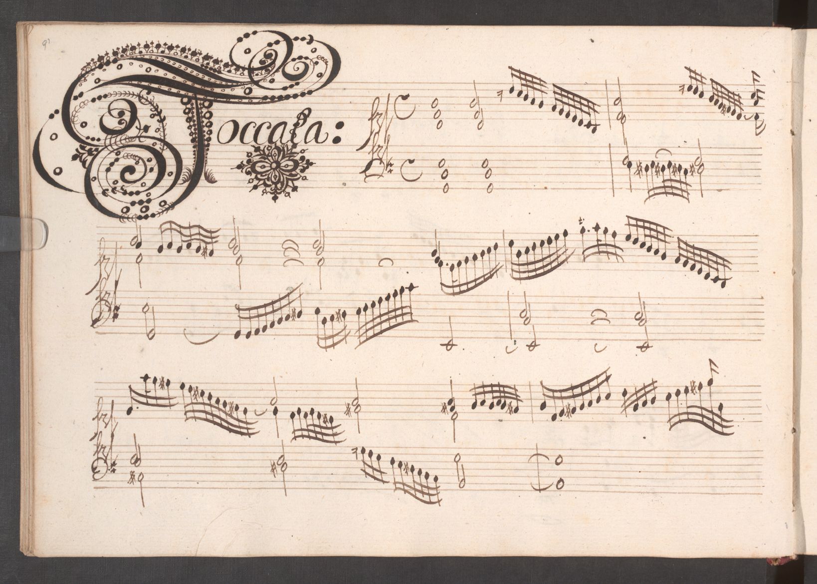 Unsere Froberger-Auswahl stützt sich ausschließlich auf das „Libro Secondo“ von 1649 und bringt jeweils ein Beispiel für jede der dort gesammelten Gattungen: eine Toccata, Fantasia und Canzon sowie die als Variationszyklus angelegte Suite „auff die Mayerin“. Glücklicherweise kann sich heutzutage jeder Interessierte selbst ein Bild von der autographen Quelle machen, denn die Österreichische Nationalbibliothek stellt auf ihrer Website Farbscans des „Libro Secondo“ zur Verfügung. Das prächtig gestaltete Titelblatt und die Kopftitel mit Schmuck-Initialen stammen zwar nicht von Froberger, sondern von einem Illustrator; den Notentext hingegen schrieb der Komponist selbst in bewundernswert kalligraphischer Klarheit nieder. Ein wahres Fest für die Augen!