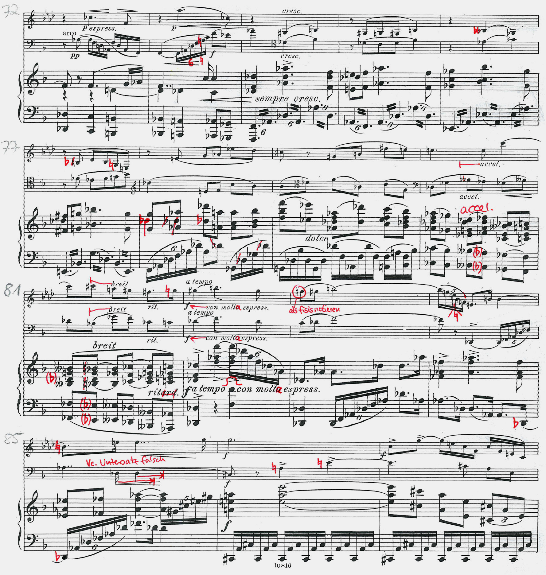Einen kleinen Eindruck von der Fehlerhaftigkeit der Erstausgabe kann vielleicht der folgende Ausschnitt aus unserer Stichvorlage vermitteln – in Rot sind hier alle Korrekturen und Ergänzungen eingetragen, die wir für unsere Neuausgabe vorgenommen haben: