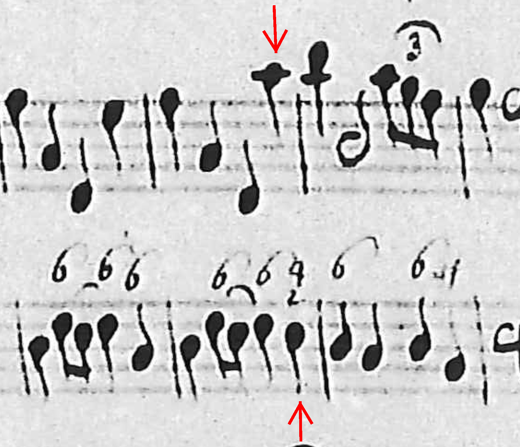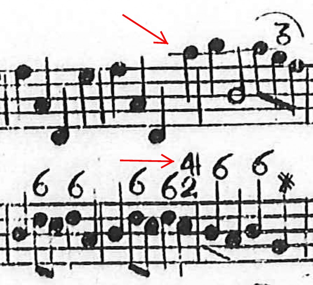 In der Abschrift AB3 entschied sich der Kopist, die Generalbassbezifferung an die Solostimme anzupassen, er schrieb also 4 statt 4+