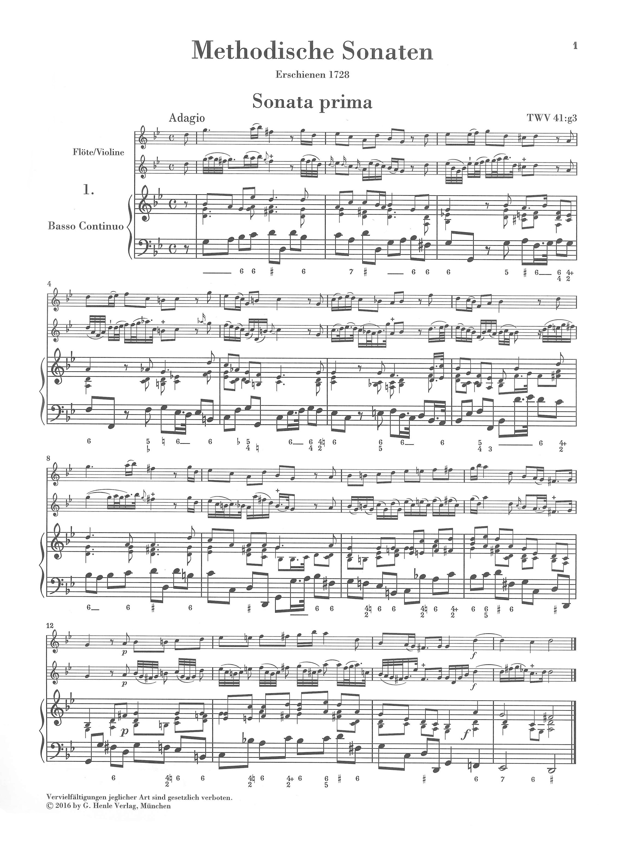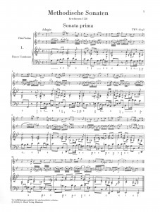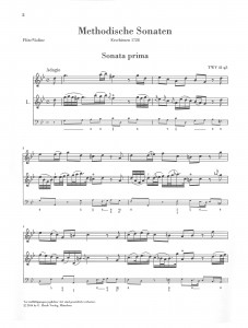 Vor fast drei Jahren, am 17.2.2014 erschien mein Blog-Beitrag zu einer luxuriös ausgestatteten Henle-Urtextedition von Bachs Triosonate BWV 1038. Damals schrieb ich, wir rüsteten Nachdrucke barocker Kammermusik auf, um auch diese mit Continuo-Partitur, zusätzlicher Basso-Stimme etc. auszustatten. Was in diesem Beitrag unerwähnt blieb, sich aber eigentlich von selbst versteht: Auch Neuausgaben in Continuo-Besetzung erhalten die thematisierte opulente Ausstattung. Kürzlich ist mal wieder eine derartige Luxus-Ausgabe erschienen, und darauf möchte ich an dieser Stelle hinweisen: Telemanns Methodische Sonaten, Teil I, mit den Sonaten 1–6 (HN 1266).