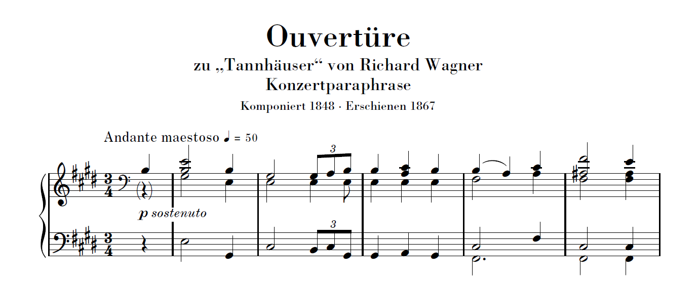 So nimmt es nicht Wunder, dass unter Liszts rund 70 Operntranskriptionen (überwiegend für Klavier solo) Wagners Bühnenwerke mit insgesamt 19 Arrangements breiten Raum einnehmen. Die bereits im Henle-Katalog vorliegenden Liszt-Bearbeitungen zum „Spinnerlied“ aus Der fliegende Holländer (HN 585) und zu „Isoldens Liebestod“ aus Tristan und Isolde (HN 558) werden demnächst durch die Konzertparaphrase der Ouvertüre zu Tannhäuser (HN 1066) erweitert.