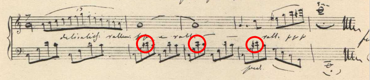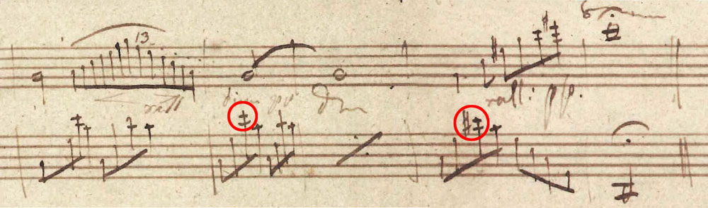 Ludwikas Vorlage war nachweislich Chopins reinschriftliches Autograph der überarbeiteten, endgültigen Version. Doch ausgerechnet das ist leider verloren gegangen. Ludwika gilt als zuverlässige Kopistin (und hat sich um den unveröffentlichten Nachlass ihres Bruders unendlich verdient gemacht). Nun kommt hinzu, dass ein weiterer Kopist Chopins verlorenes Autograph abgeschrieben hat, nämlich Oskar Kolberg. Und darin steht das picardische eis erst zum Schluss. Schlussfolgerung: entweder irrt die Schwester oder Kolberg. Also 1:1. Chopin hatte aber sein cis-moll-Nocturne vorab schon vor seiner Reinschrift entworfen, dieses Autograph hat überlebt (und ist in einem schönen Faksimile des Chopin und George Sand-Museums auf Mallorca, 2003, publiziert) – und in diesem Autograph steht das #-Vorzeichen eindeutig erst, und mich und die Jury-Kollegen letztlich überzeugender, im Schlusstakt: