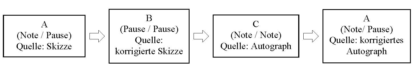 Offenbar hat Debussy diese auf den ersten Blick unkomplizierte Passage der Viola gehöriges Kopfzerbrechen bereitet. Schematisch folgen diese drei Versionen aufeinander (in Klammern jeweils der Befund in Takt 72 / Takt 73 auf Zählzeit Eins):