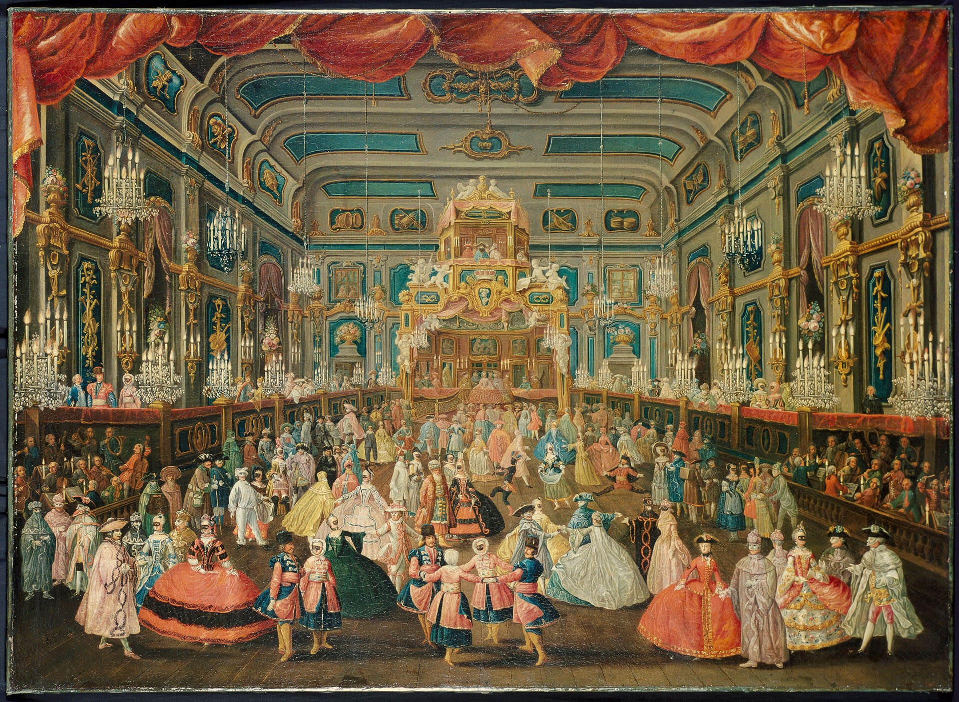 Franz Rousseau, Maskenball in der Residenz zu Bonn, Inneres des Hoftheaters (Kurfürsten-Schloss), 18. Jahrhundert. Köln, Kölnisches Stadtmuseum, Inv.-Nr. 1927/658