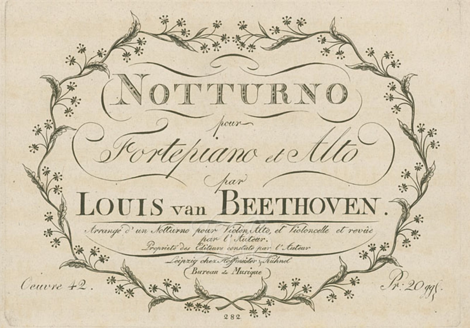 Da ich hier über Beethoven und die Bratsche berichte, interessiert uns natürlich vor allem das „Notturno“, denn damit liegt tatsächlich ein Solowerk für Viola vor, sogar mit einer Werkzahl versehen. Es erschien 1804 bei Hoffmeister & Kühnel in Leipzig: