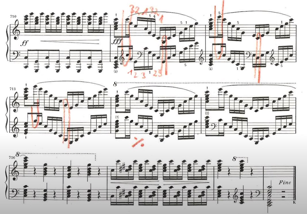 Als Claudius Tanski uns von seinem Youtube-Projekt erzählte, erwähnte er auch, dass er auf der letzten Seite der Noten eine geschickte Handverteilungslösung für eine sehr schwierige Arpeggio-Stelle gefunden hatte, die er gleich im Youtube-Video mit in die Noten eingezeichnet hatte. Das rief mich auf den Plan: Warum nicht Prof. Tanski bitten, uns für unsere Henle Library App seine kompletten Fingersätze zur Fantasie zur Verfügung zu stellen. Sicher gab es noch mehr raffinierte Lösungen, die es mitzuteilen lohnt?