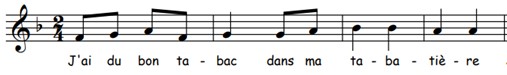 Im zweiten Abschnitt (Takte 17–25) verarbeitet Saint-Saëns das seit dem 18. Jahrhundert sehr populäre Lied J’ai du bon tabac dans ma tabatière, das bis heute in kaum einer Sammlung französischer Volks- oder Kinderlieder fehlt.
