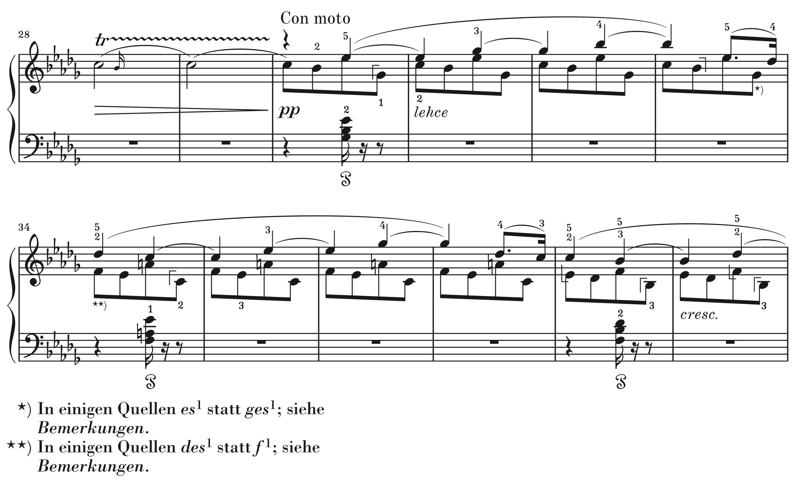 In Nr. 2 aus Reihe I sind in T. 33 und 34 Noten in der Unterstimme der rechten Hand unklar. Es geht um die Noten ges1 und f1, beide unmittelbar um den Taktstrich herum.