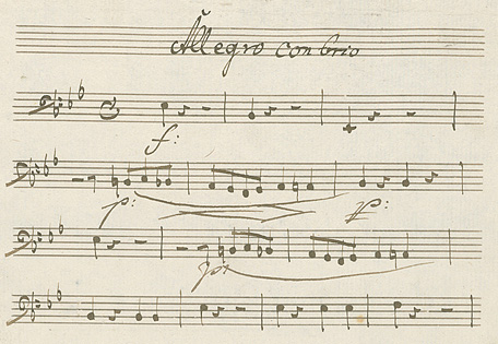 Here and there in the edition the seventh instrument reinforces the lowest part of the sextet. This was not yet the case, though, in a copy that Beethoven himself checked and corrected. In this copy now preserved in the Bonn Beethoven-Haus, the sextet has only six parts. The lowest part is simply indicated as ‘Violoncello’ and does not in any way suggest using a contrabass.