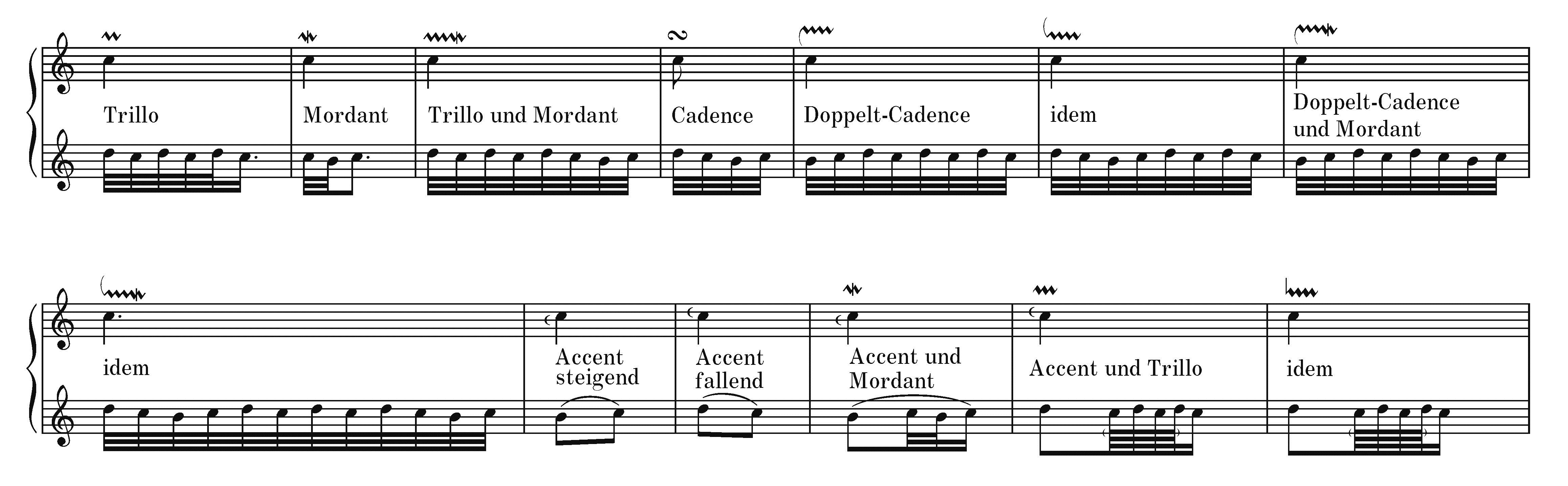 There are ornamentation symbols and explanations of these symbols aplenty from the last four centuries. It almost seems as if one were always trying harder to deprive the ornamentation of its realm of improvisation and to spell it all out precisely. All in vain. Are there any musicians not familiar with the discussion about the questions of “grace note on or before the beat”, “trill from the main note or from the neighbouring note”, etc.