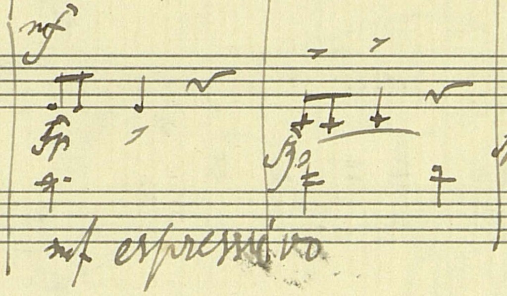 Autograph, 3rd movement, mm. 57–58 (viola and violoncello parts)