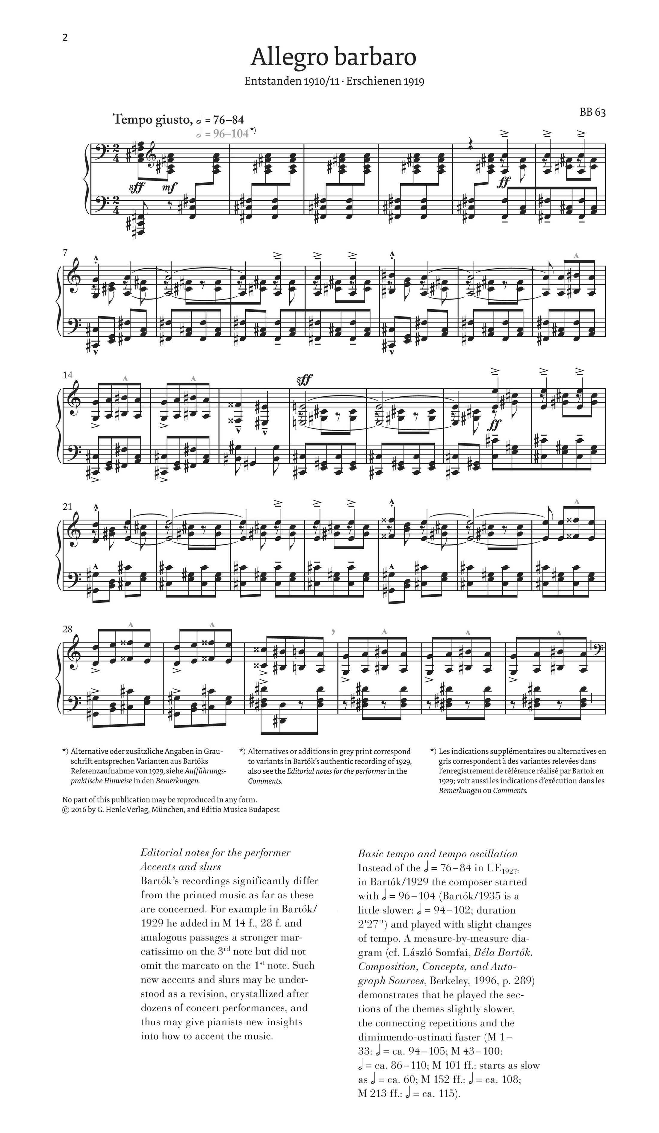 Instead of such a reference, the recording has even been consulted for your Urtext edition of the Allegro barbaro. The variants are reproduced, shaded in grey, in the music text and explained in the “Editorial notes for the performer.”