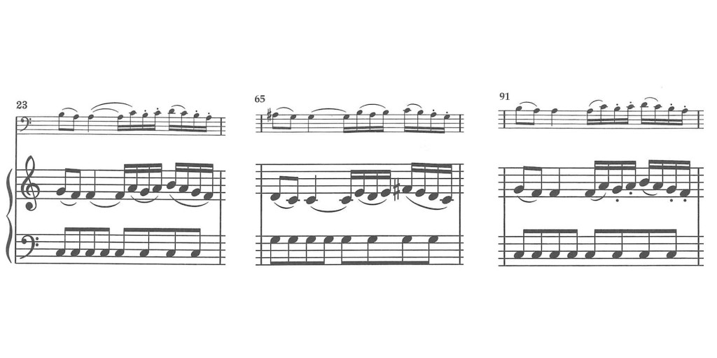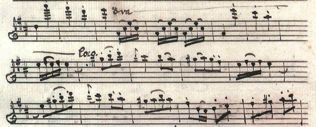 The Vanhal concerto comes down to us in a copy of the parts by an unknown, supposedly Viennese copyist, probably going back to the composer’s autograph of the score, now lost. Extensive handwriting comparison done while preparing the new Henle edition revealed that in the first two movements probably all (!) octave occurrences come from the copyist mentioned and are hence authentic. Here, these could be of the greatest consequence for musical practice. Differing from the source was, for instance, the following passage, often played up to now an octave lower (from the treble clef, m. 93):
