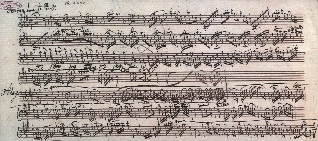 Strictly speaking, only a few of the octave markings in the source are questionable. The main problem is that in many editions the original occurrence of octaves is simply missing. Occasionally added were even new octaves – not originally present at all. Contributing to the confusion is, furthermore, a characteristic notation typical of the time: Whole passages whose true sound is two octaves lower are notated in the source transposed into the high treble clef. This clef, today partly no longer in use, was also “translated” into wrong octave registers.