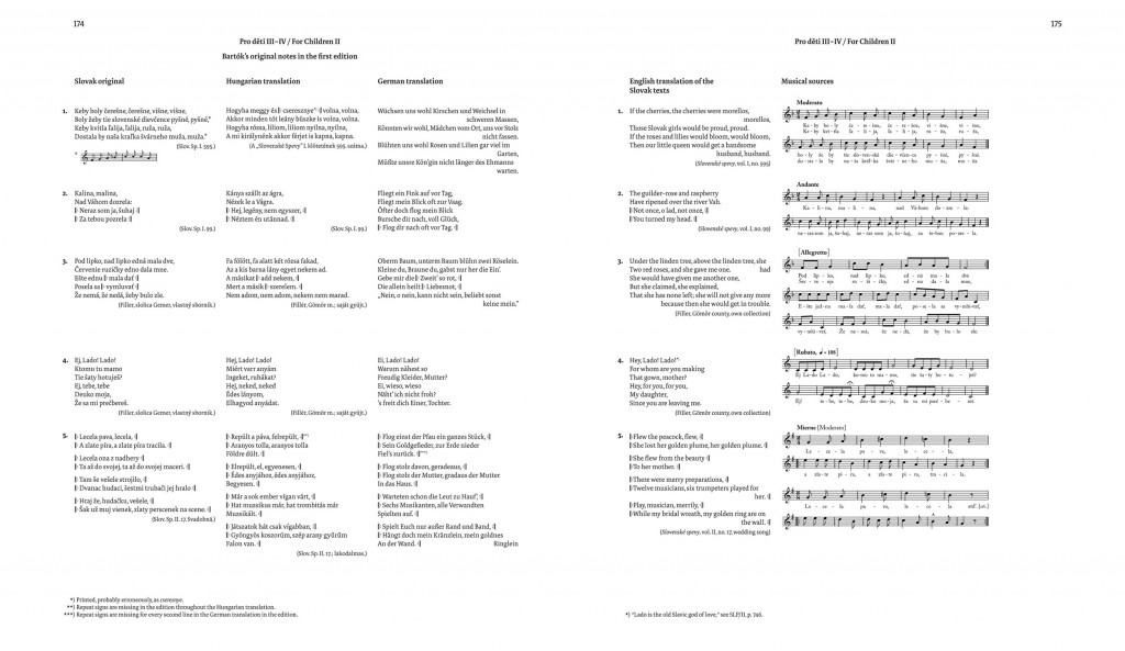 LV: Yes, folk music plays an essential role in For Children, and so it comes as little surprise that we have presented the Hungarian and Slovakian lied models with multilingual texts in an appendix. Here the support of my co-editor Vera Lampert, author of the seminal catalogue of Bartók’s folk-song arrangements (HN 2617) was of course very helpful.