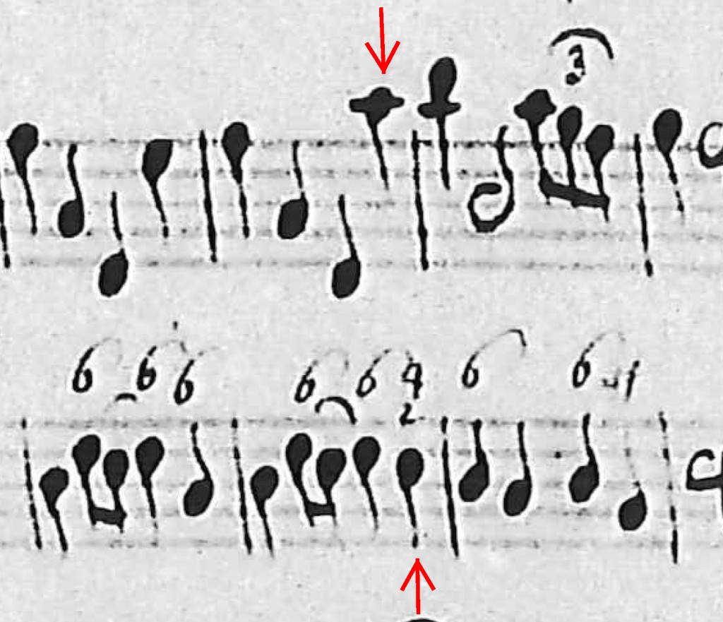 In copy C3 the copyist decided to adapt the thorough-bass figuration to the solo part, thus writing 4 instead 4+