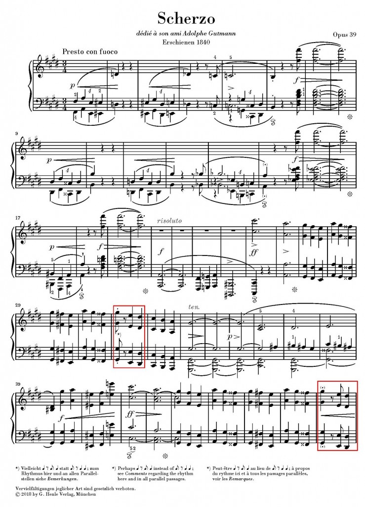In my blog post of 21 March 2016, I lamented the existing “confusion” concerning the tied notes in Chopin’s 1st Scherzo. In the meantime, casually expressed, another 2 Scherzi later, 2 Scherzi more mature – and clearly even more confused, alas. The 2nd Scherzo, op. 31, and the 3rd Scherzo, op. 39, are just now appearing in my new edition. So, it makes sense to update my report from the Chopin workshop and to highlight a few problems in these editions. Therefore: “Confusion – episodes 2 & 3”!