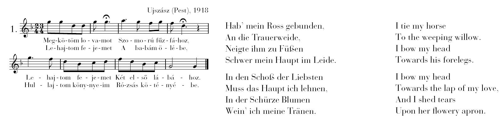 In the numerous works based on folk music, we particularly benefit from the diligence of our colleagues in Budapest. For these models are critically edited there from the sources for the complete edition and the lied texts are translated. So, in an appendix our Urtext editions provide an “Index of the melodies and their words” including translation. Here you will find not only substantive information, such as whether complaints are about unhappy love (No. 1) or about just a torn pair of trousers (No. 8), but also references to structural aspects such as refrains, and so, where possible, resulting in further stimulus for the musical interpretation.