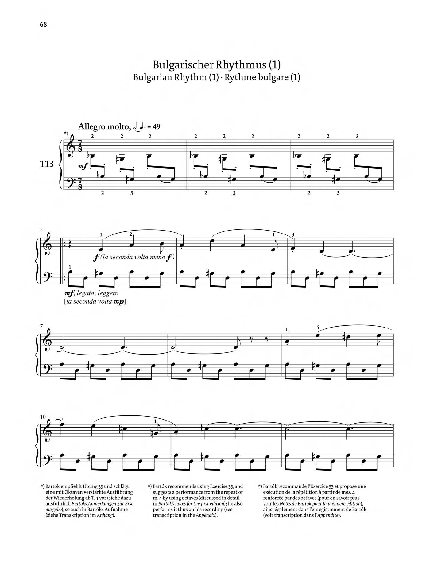 Another advantage of creating our Urtext editions from the complete edition can literally be grasped with the hands in the case of the Mikroskosmos: Here we can offer the six-volume work by Bartók lavishly provided with explanations and exercises in three extremely handy double volumes. For this we have minimised the source description (leaving detailed explanation for the complete edition) and adopted the information about Bartók’s way of performing, crucial for the musician, etc., as directly as possible in the music text itself.