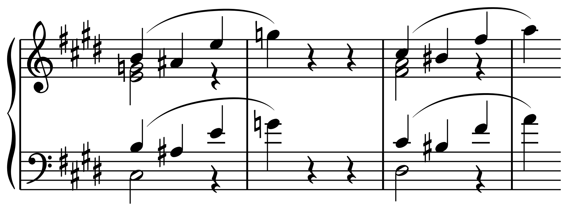 Now in conclusion, still some “music”: Two accolades from my engraver’s model of the 4th Scherzo, tucked into which are two problematic text passages: