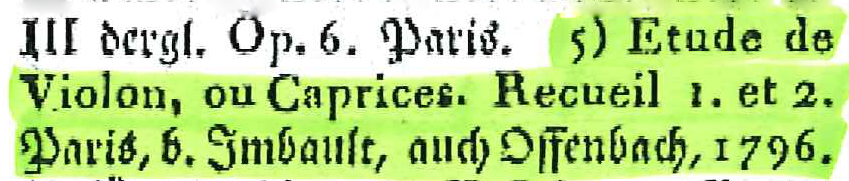 This fact has been known ever since Ingrid Isola’s work of 2003, Die Violinetüden von Kreutzer, Fiorillo und Rode. Nevertheless, the wrong date is still to be found in new editions of the etudes coming, for example, from 2010.