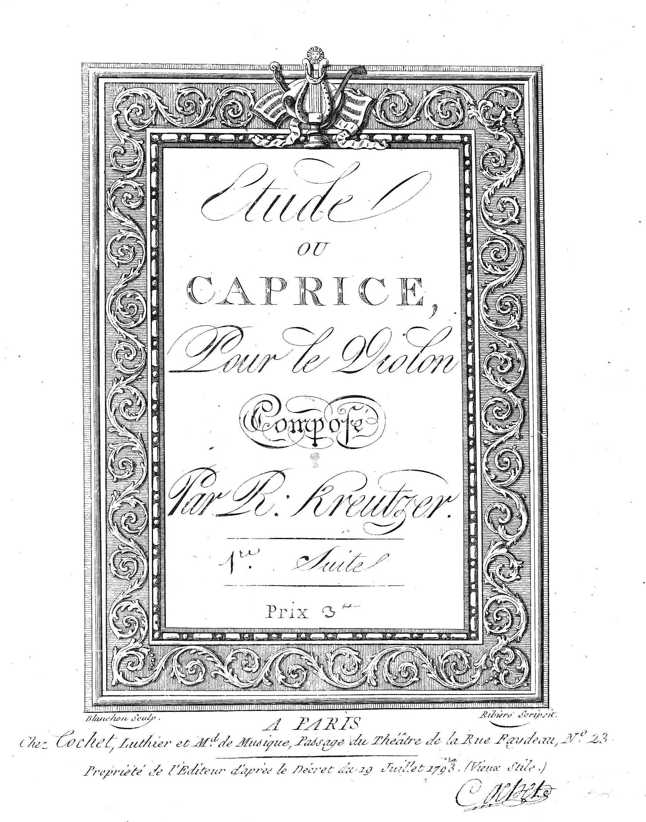 As it turns out, Rolla did indeed get closer to the truth, but only halfway. For both of the etudes are, in fact, authentic pieces composed by Kreutzer himself. But they did not remain unpublished until 1831, as Rolla claims, but saw the light of day in a first edition revised by Kreutzer himself that still appeared in print during his lifetime.