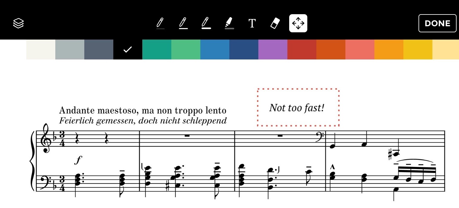 5. When you are in annotation mode, you can navigate around the score by swiping with two fingers. You can now also enlarge or reduce the size of the music by using the pinch to zoom motion.