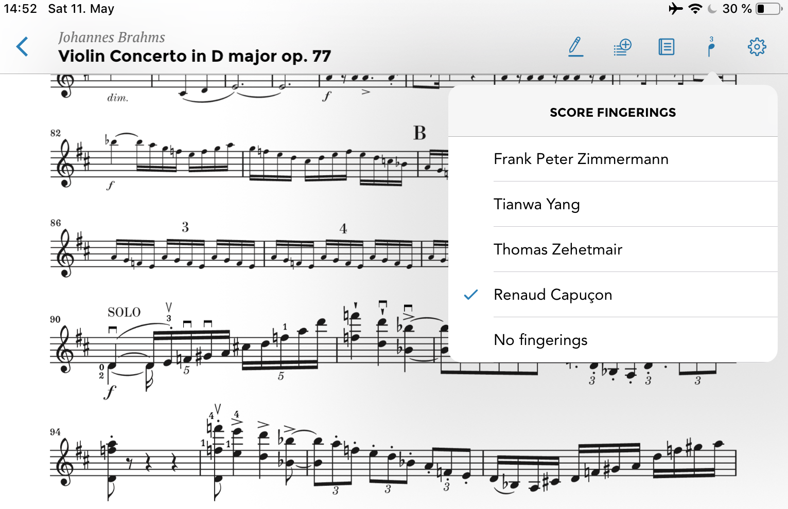 And in addition to this, we would also like to continue expanding our special “feature”: the opportunity to view bowings and fingerings by distinguished artists both past and present for key solo and chamber music works. We are extremely proud and grateful that such a great number of first-class instrumentalists have added contributions exclusively for our app: Renaud Capuçon, David Geringas, Johannes Moser, Antoine Tamestit, Christian Tetzlaff, the Armida Quartet, to name but a few.