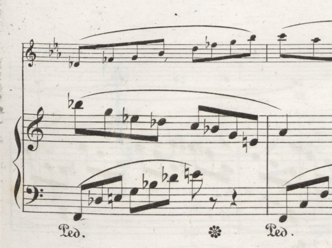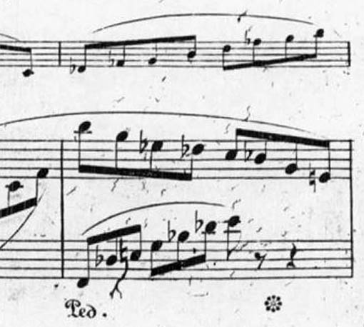 The autograph, though, doesn’t tell the whole story, since prepared for publishing the Fantasiestücke would have been a copy used as engraver’s model (presently lost), in which Schumann would still have been able to make small changes and further compose, so to speak. He would also have carefully supervised the engraving of the first print by proofreading galley proofs received from the publisher. And despite all that, there is still an indisputable flat before the notes: