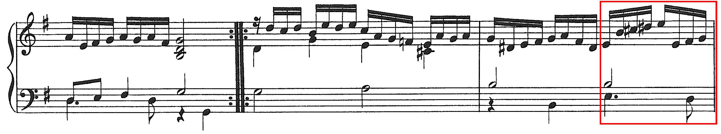 In conclusion, let’s take a look at the quinta partita. Here, in the same passage we find the note c sharp that we so missed in the quarta partita, though a d sharp is still not also notated here.