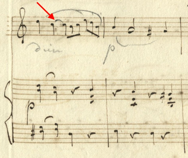 Further inadvertent errors in the first edition can occasionally be found in the articulation markings. To this end, our editor Krause makes some careful supplementary suggestions, always clearly identified within brackets in our edition. For example: in comparing measures 315–317 with the analogous measures in the exposition (mm. 111–113), some details in the recapitulation, such as the crescendo hairpin and three accents, are probably only inadvertently missing in the first edition, so these were added in brackets in our edition: