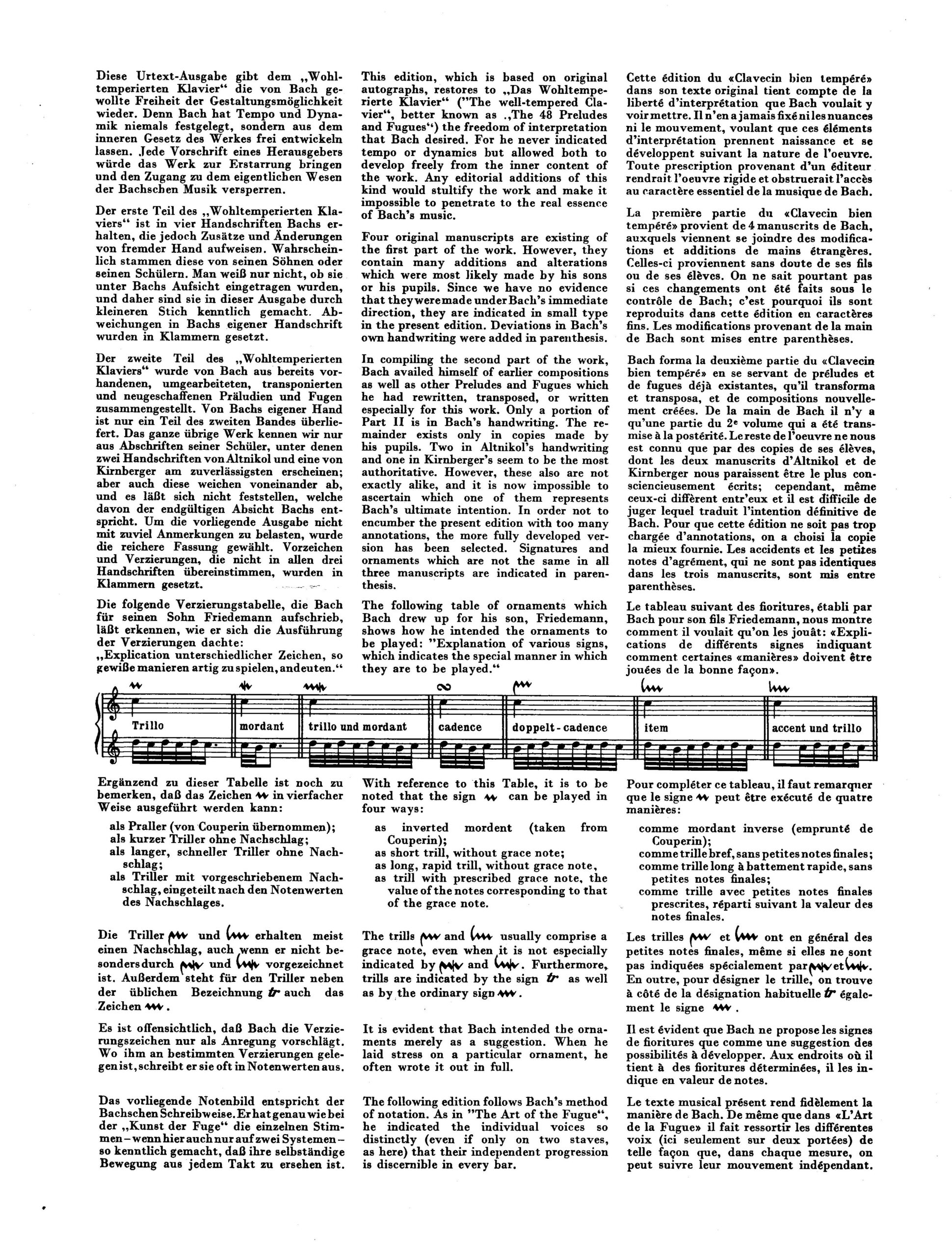 This edition, which is based on original autographs, restores to “Das Wohltemperierte Klavier” (“The well-tempered Clavier”) the freedom of interpretation that Bach desired. For he never indicated tempo or dynamics but allowed both to develop freely from the inner content of the work. Any editorial additions of this kind would stultify the work and make it impossible to penetrate to the real essence of Bach’s music.