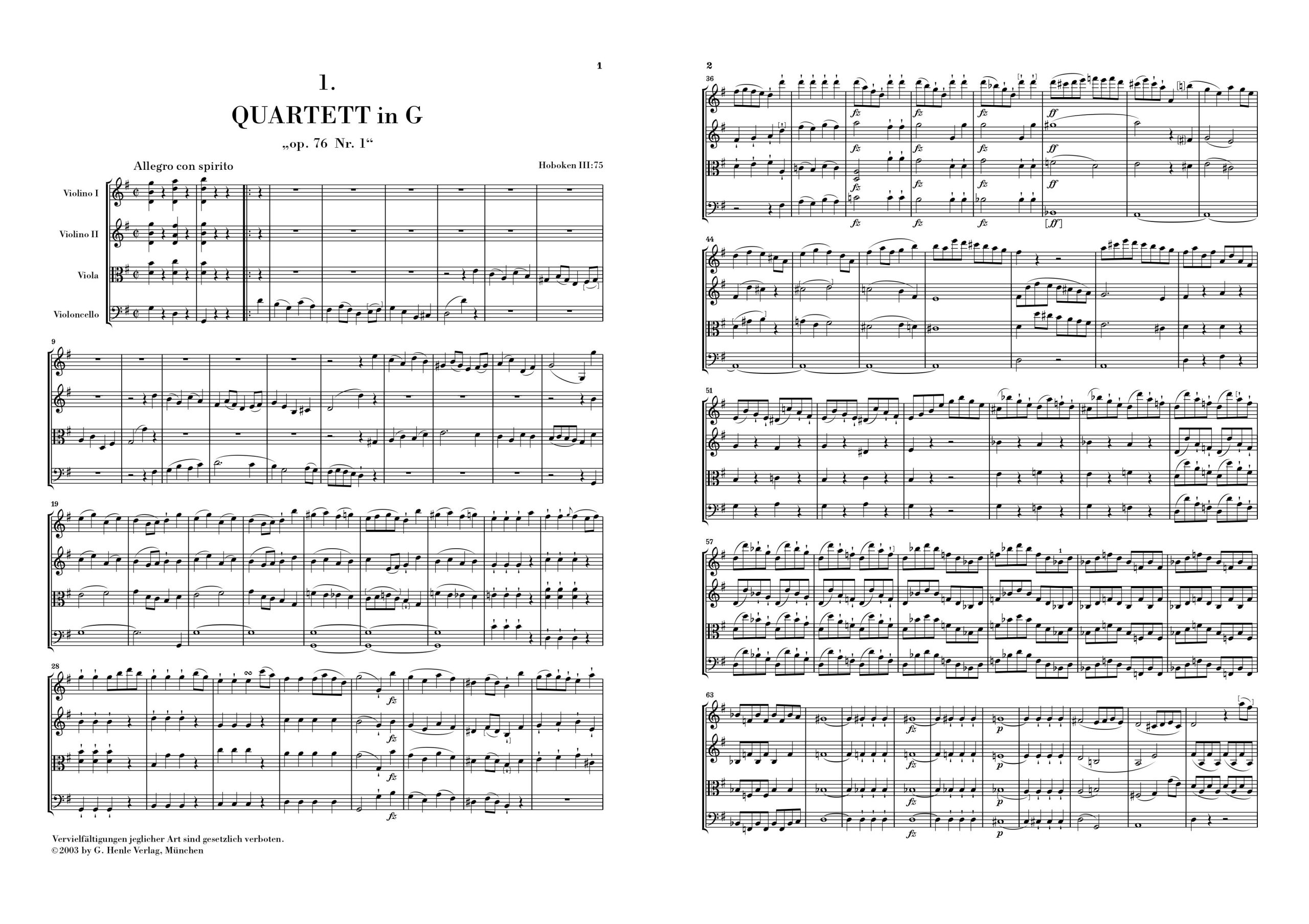 J. Haydn Quartet Op. 76/1